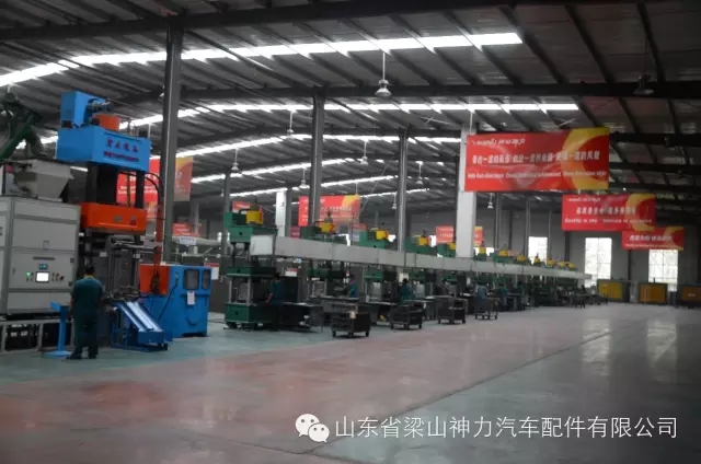 the brake shoe production line was buildon 2008, quality steel as material, Product is made of stamping forming,automatic welding, CNC milling, shot blasting derusting, electrophoresispainting, national excellent quality, first-class production process. Yearlycapacity: 300000 pcs. Mainly production equipment: Hydraulic scissor plateshears, half closed single point press, open press with fixed bed, the brakeshoe direct Angle welding machine, automatic brake shoe plug welding machine,automatic brake shoe horn welding machine, four-column hydraulic press, CNCmilling machine, shot blasting cleaning machine, shoe electrophoresis paintingline, pneumatic marking machine, semi-automatic riveting machine,multi-function hydraulic shoe for riveting machine, grinding machine, shoe assemblyheavy vehicle outer arc grinding machine, dual cycle heat shrinkable packagingmachine